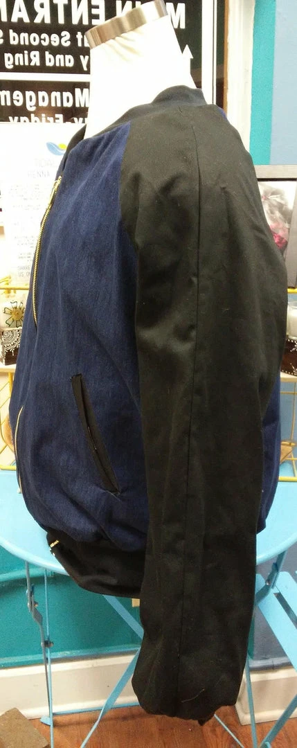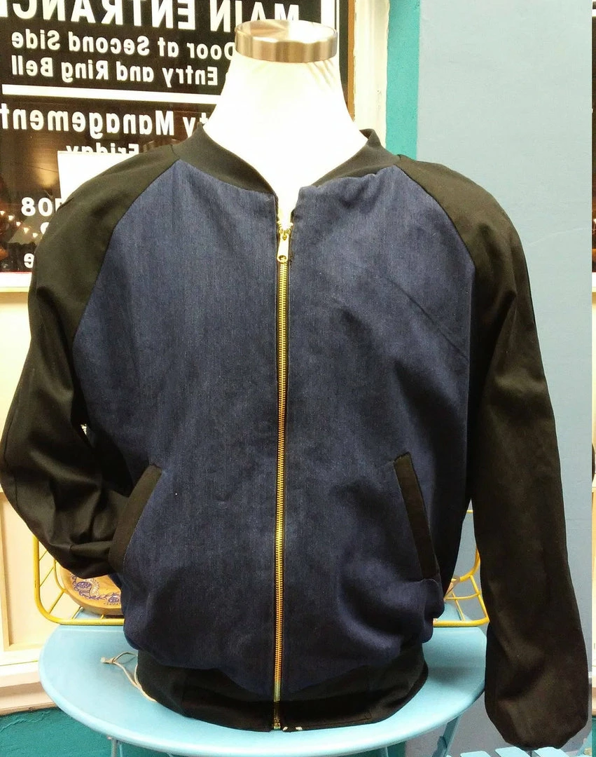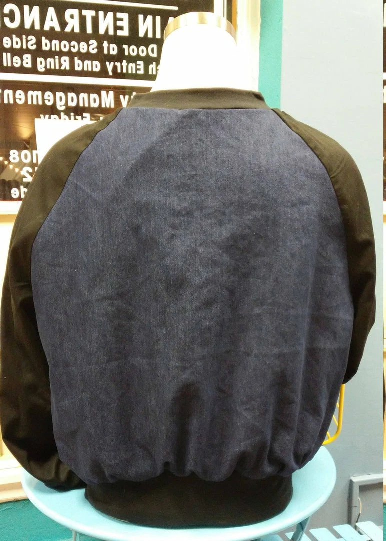 Handmade reversible bomber jacket, made in beautiful mud cloth from Mali and denim. Welt pockets on denim side, side pockets on mud cloth side. Unisex sizing, for women size down by 1.