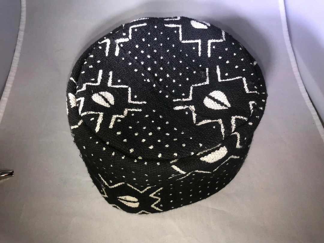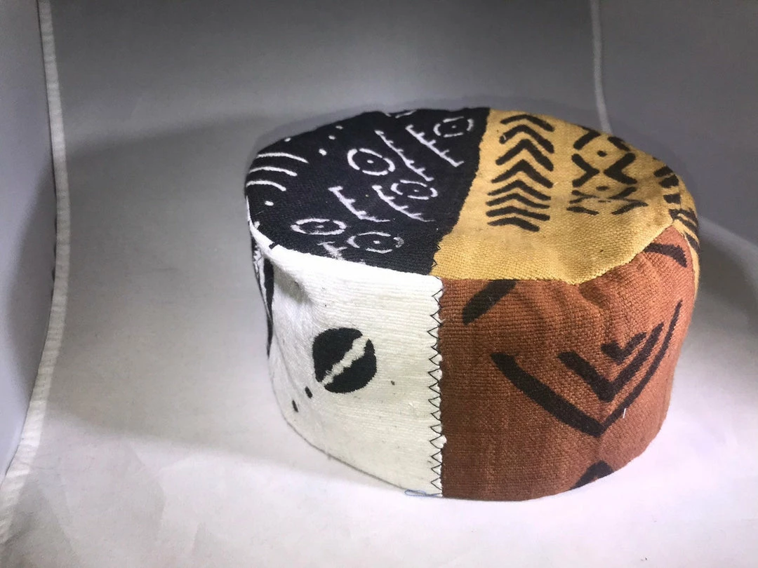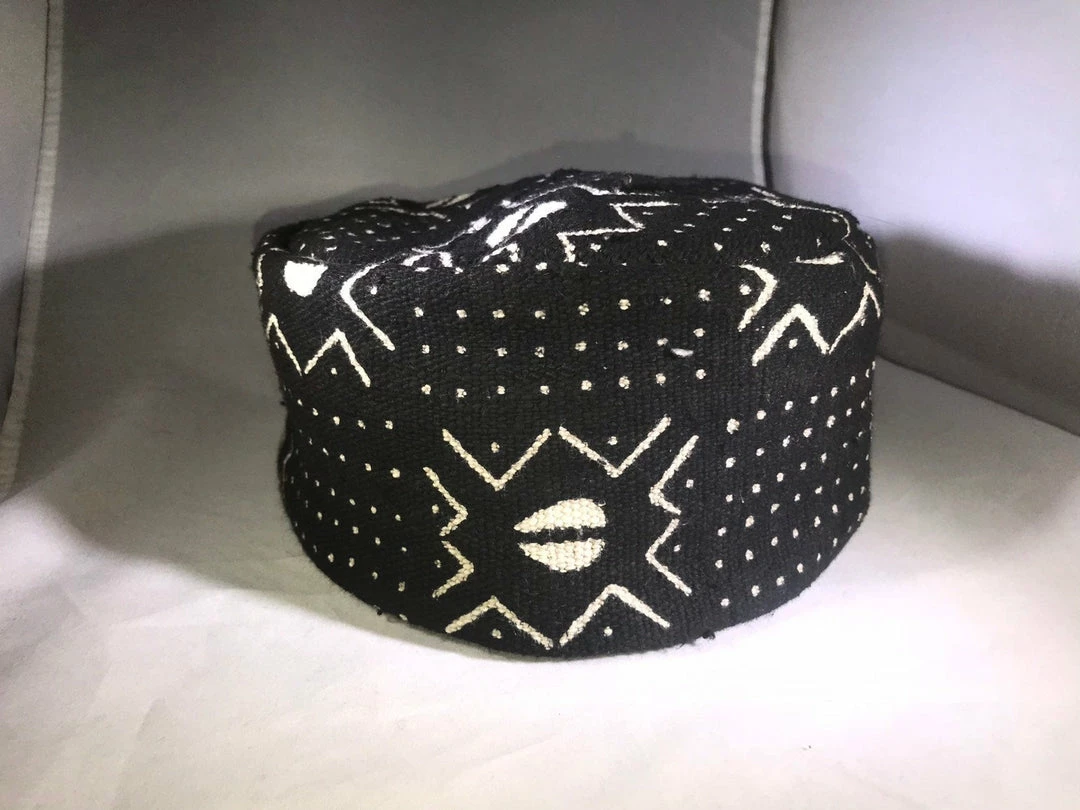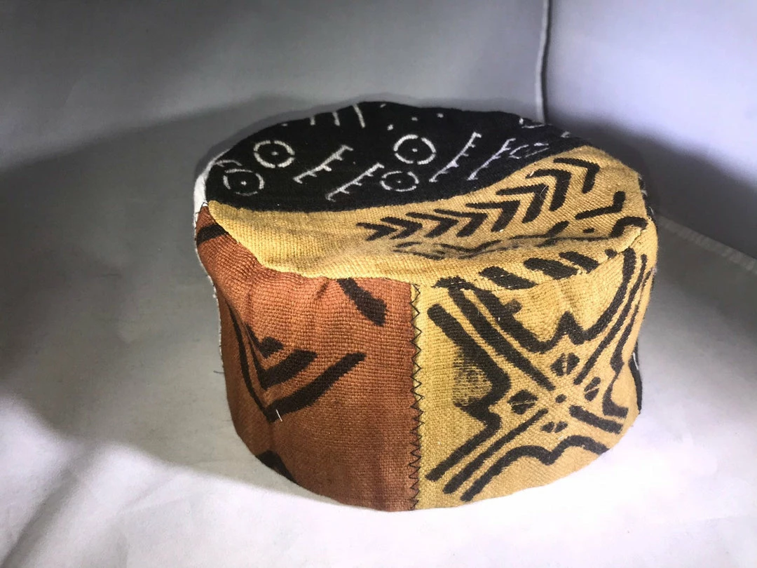 Traditional Kufi hat, made from African mud cloth. Hat is made to order, please provide a general size, or your head measurement, for a perfect fit. Fully lined in black linen, these Kufi are beautifully made and will serve you for years!