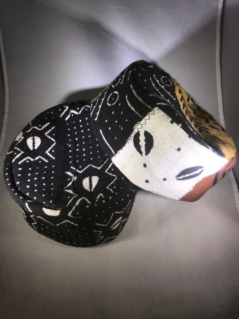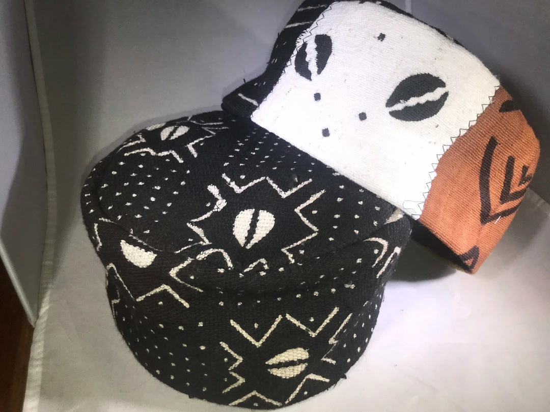 Mud cloth is a hand woven, hand dyed textile. No 2 pieces are alike. I source my mudcloth in Ghana, it has been handmade in Mali. Hats are made by me, in the US. Please note that the prints shown are representative of what you will get, but the prints vary, as no 2 are the same. If you’d like to see the exact print before ordering, please shoot me a message, otherwise choose from 3 available color schemes!