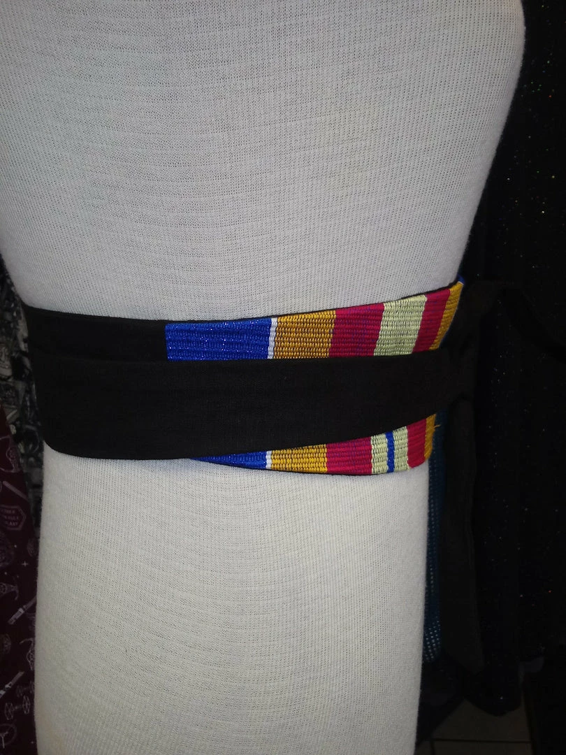 Tidal Cool Reversible African Kente Cloth And Black Linen Obi Belt