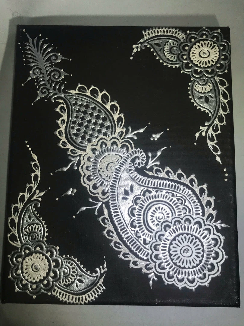 Be the first to review “Tidal Cool Black, Silver And White Acrylic On Canvas Henna Painting” Cancel reply