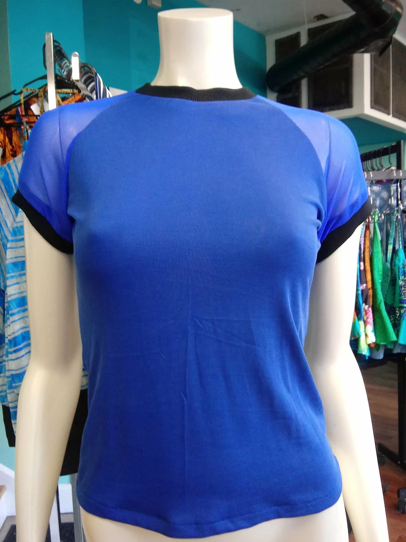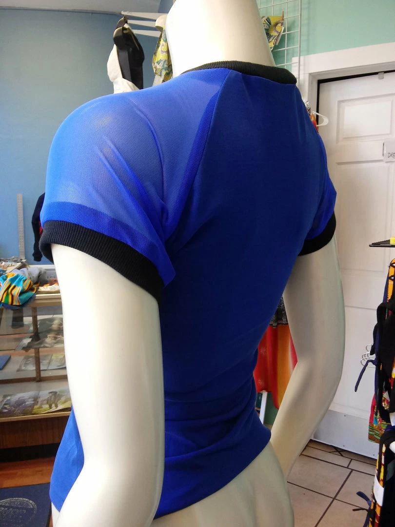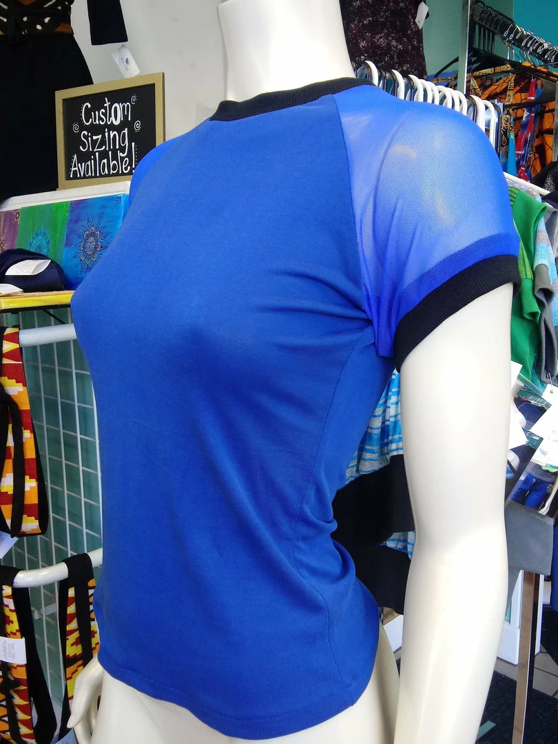 Elevate your casual wardrobe with this easy wear and versatile blue knit pullover. Made from quality soft brushed modal knit with sheer mesh sleeves, and black rib knit neck and sleeves. Part of the Tidal Cool Lagoon 2019 Collection for Accra Fashion Week, Ghana. African print overalls sold separately. Machine wash cold, lay flat to dry.