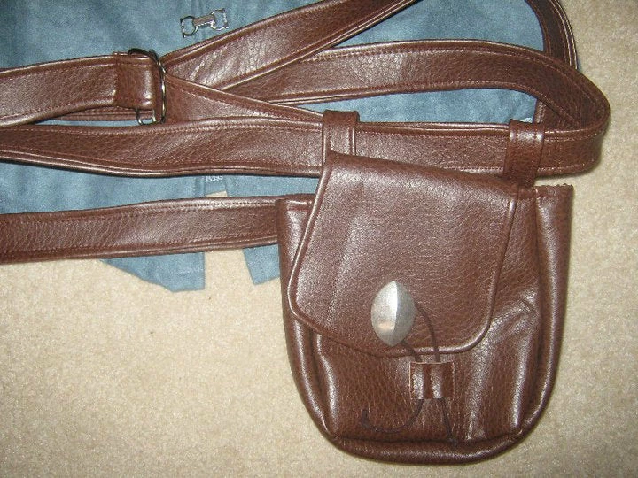 This cosplay hip pouch will finish your look! Faux leather belt wraps, and has sliding and fully functional pouch, suitable for a variety of cosplay looks. Disney Tangled menโs tunic sold separately, pair together for full look.