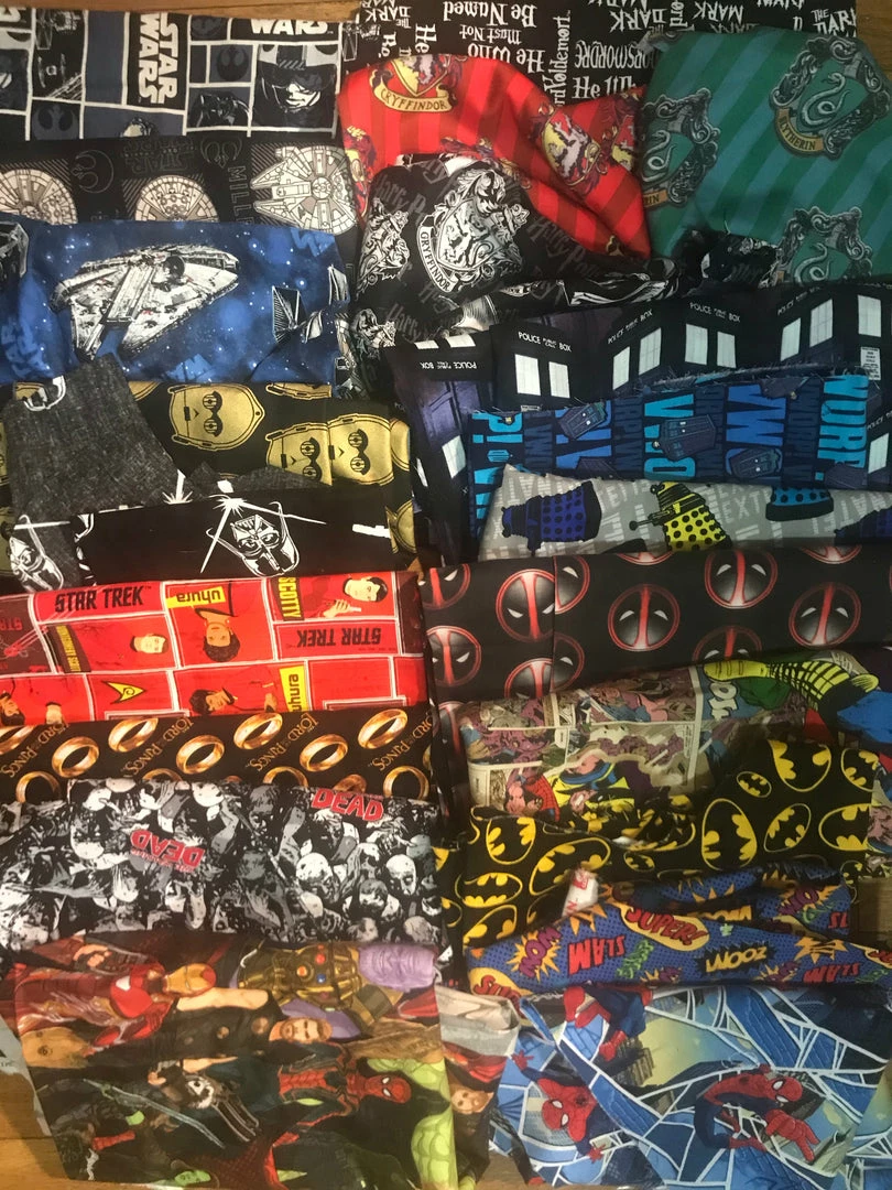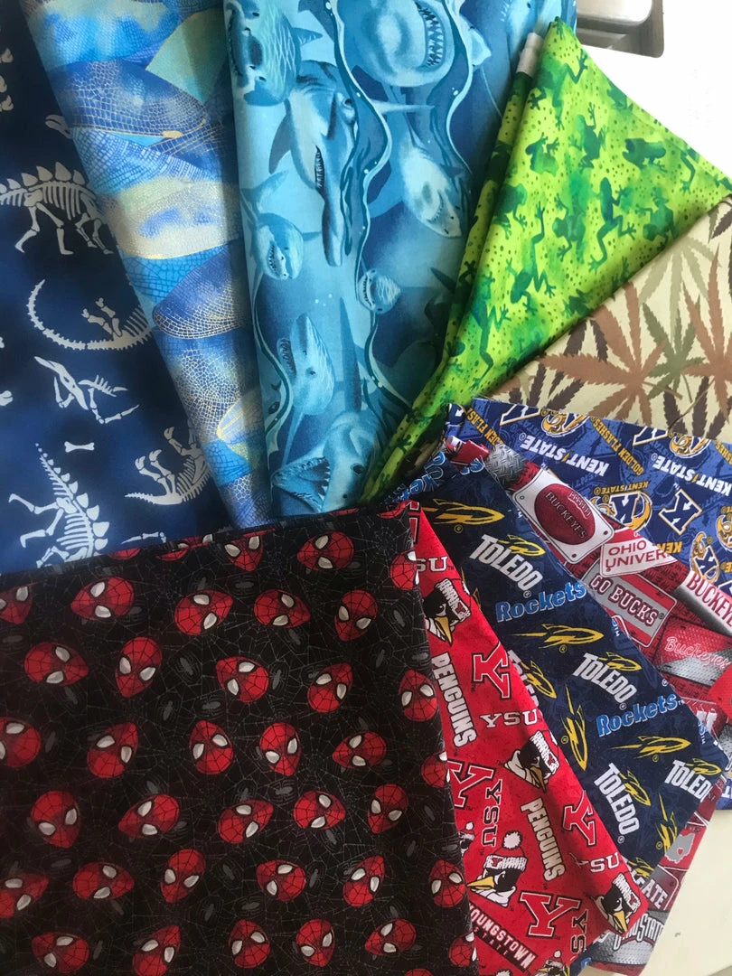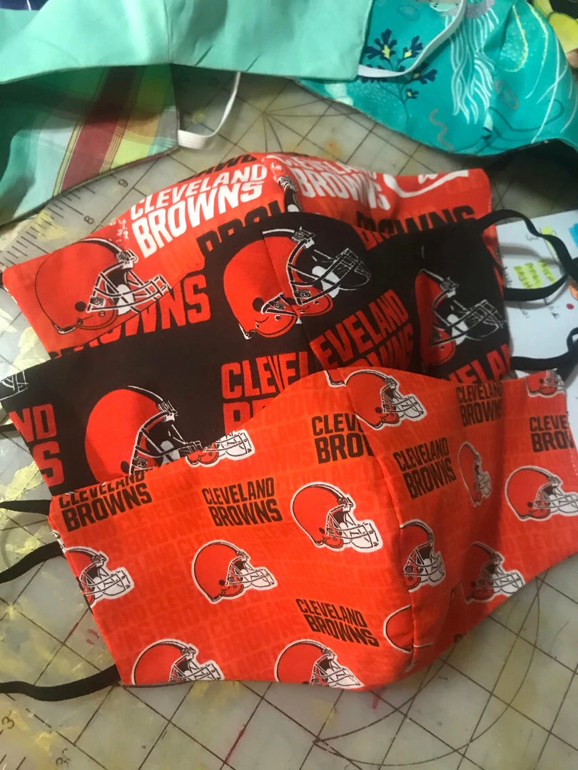 Fabric masks made from 100%cotton, double layered, Elastic ear loops. Available in adult small or large sizes, or children’s. I have dozens of prints available, from geek and character, floral, African prints, sports team or solid cotton, make a request in your notes (please keep in mind the fabrics are constantly changing due to the high demand). Masks with filter pockets available in the drop down menu. Bulk pricing is available, send a message to [email protected]. Free local pick up in Cleveland Heights. Please specify adult or kids.