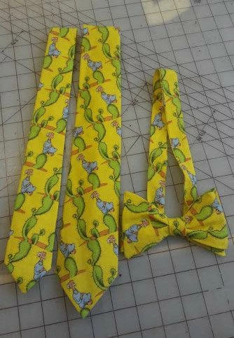 Neckties are made from 100% printed cotton and lined with unbleached muslin. I recommend spot cleaning and a hot iron as needed.