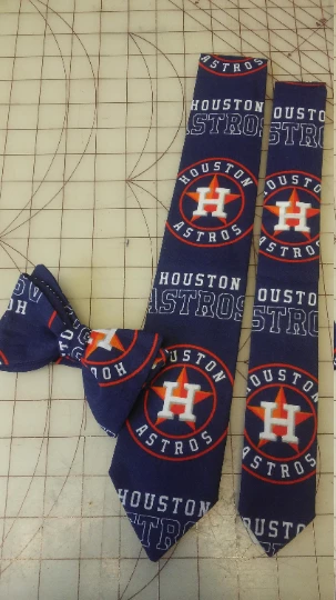 MLB Houston Astros necktie in bow tie, skinny tie, or standard tie styles, and kids or adult sizes. Adult Houston Astros bow tie is self-tie, sized to 16.5″, custom length available at no charge. Kids Chicago Bears bow tie comes pre-tied, and has back elastic to allow it to slip over the head. Please see chart below for full necktie and bow tie sizing for children and adults.
