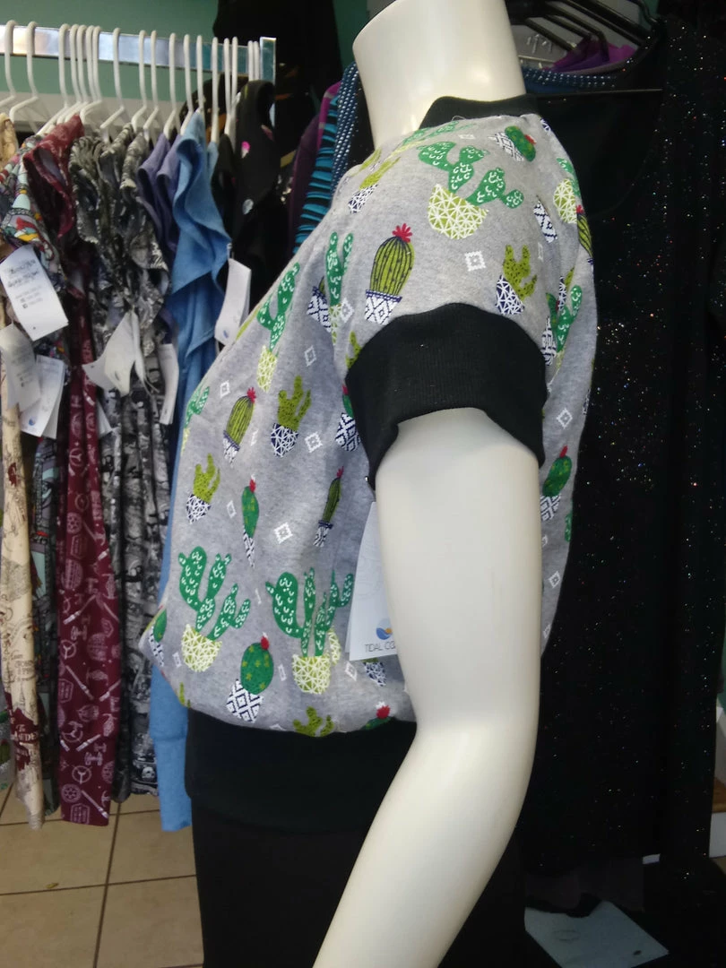 Be the first to review “Tidal Cool Raglan Pullover In Grey Cactus Print Jersey Knit With Silver Sleeves Tops And Ponchos” Cancel reply
