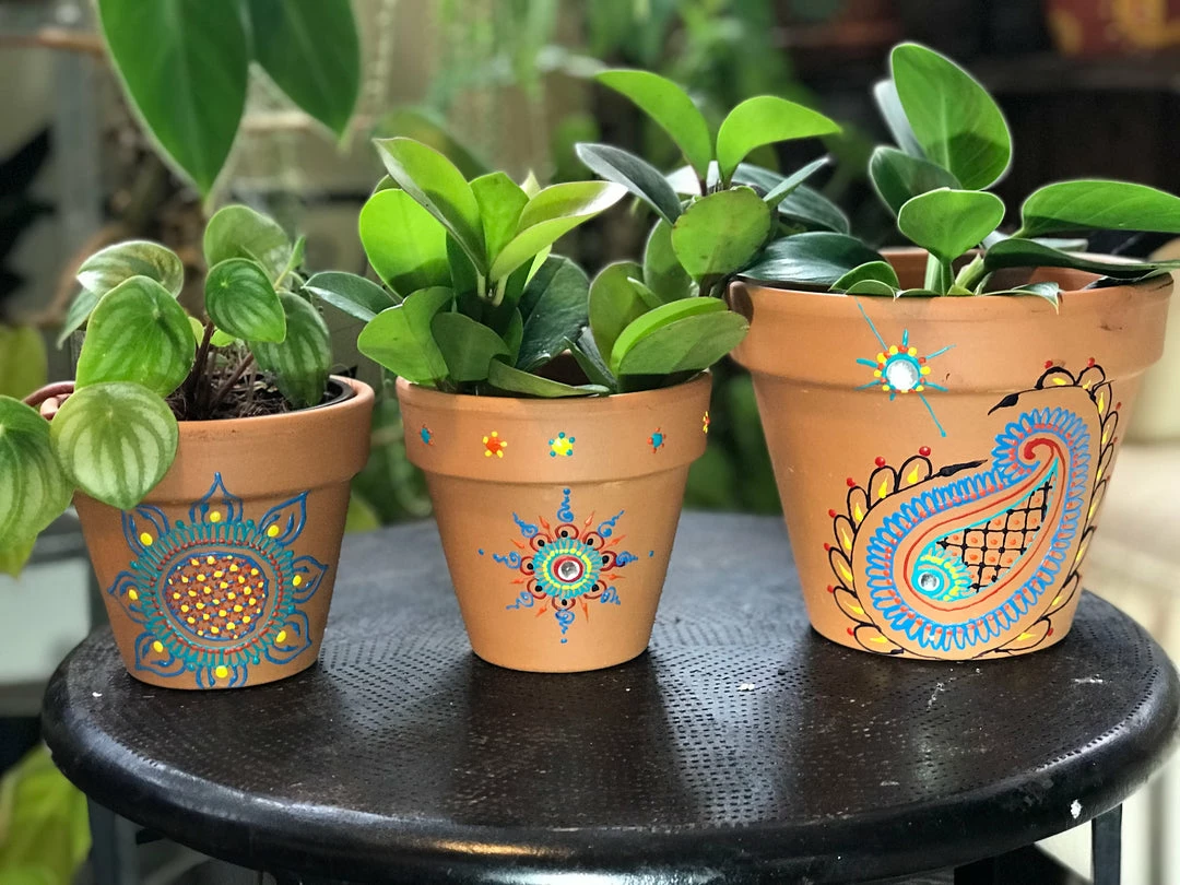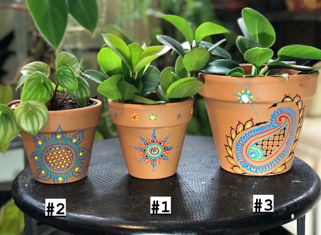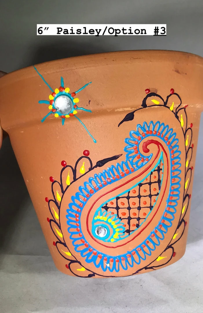 Tidal Cool Henna Art And Decor Colorful Henna Design Hand Painted Terra Cotta Pots