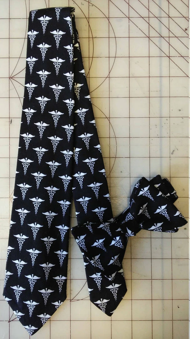 Registered Nurse Symbol RN necktie in bow tie, skinny tie, or standard tie styles, and kids or adult sizes. Adult RN nurse bow tie is self-tie, sized to 16.5″, custom length available at no charge. Kids Registered Nurse Symbolbow tie comes pre-tied, and has back elastic to allow it to slip over the head. Please see chart below for full necktie and bow tie sizing for children and adults.