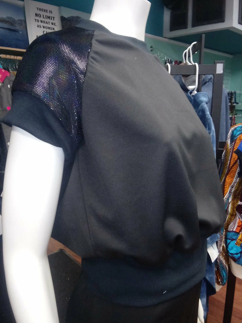 Be the first to review “Tidal Cool Shimmery Raglan Sleeve Pullover In Black Knit With Black Cuffs Tops And Ponchos” Cancel reply