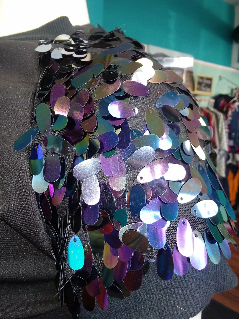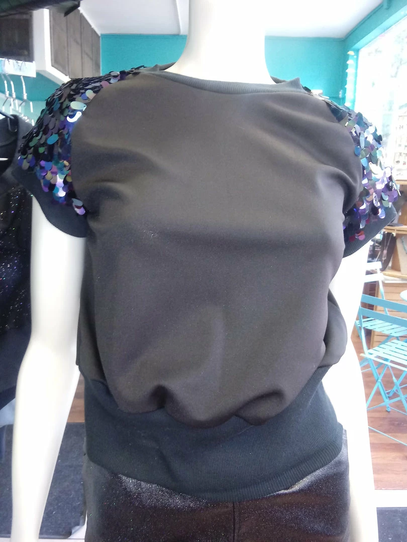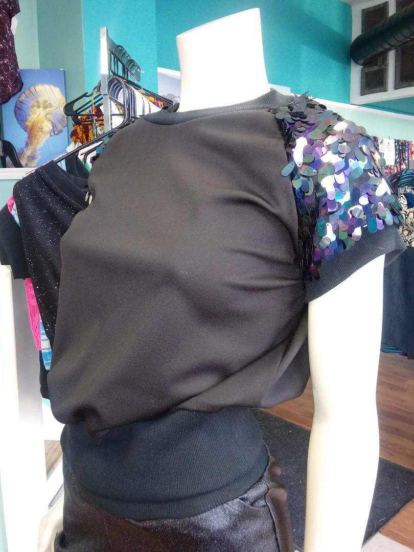 Be the first to review “Tidal Cool Tops And Ponchos Black Iridescent Sequin And Knit Pullover Crewneck” Cancel reply