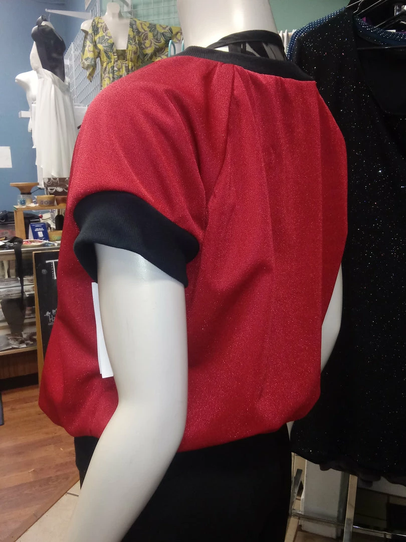 Be the first to review “Tidal Cool Tops And Ponchos Shimmery Red Pullover In Sparkle Knit With Black Cuffs” Cancel reply