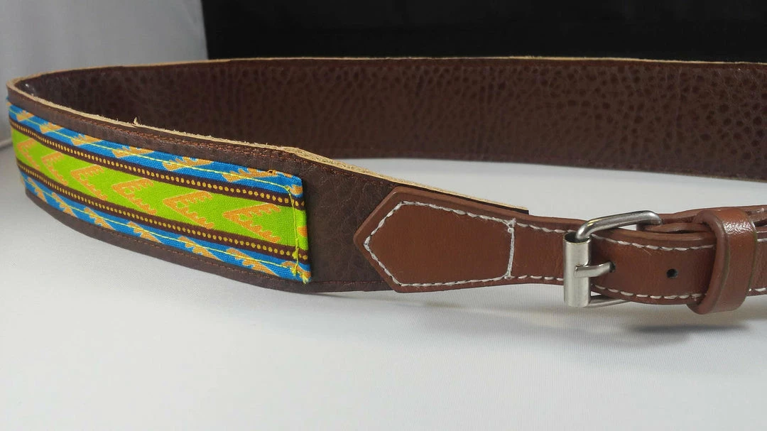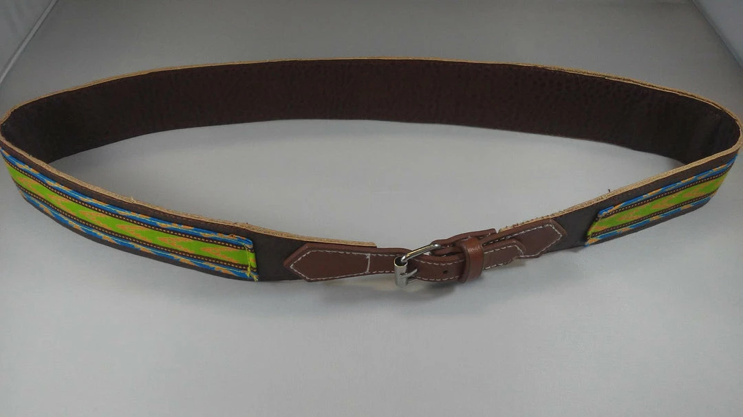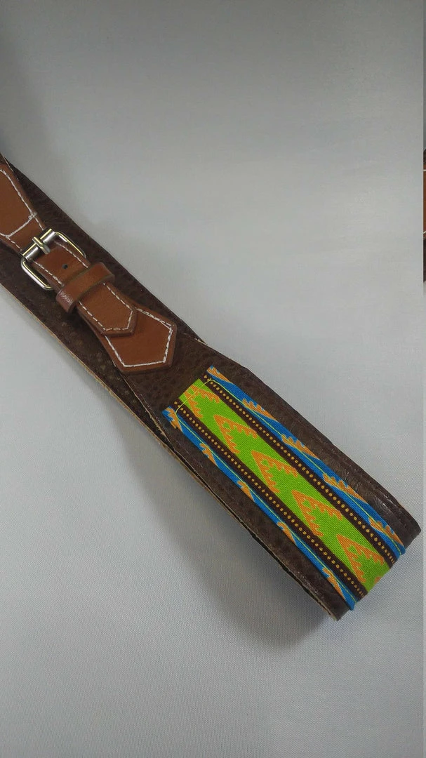 Vegan leather and African Ankara, with adjustable buckle closure. 30” in length before buckling. A stylish way to compliment and accent your look.